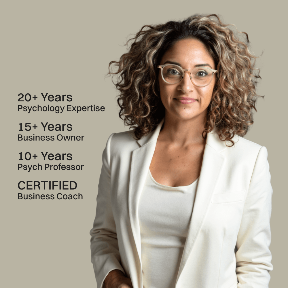 I combine 20+ years of psychology expertise with real business experience to help you succeed without burning out and actually enjoy the process of growing your income.